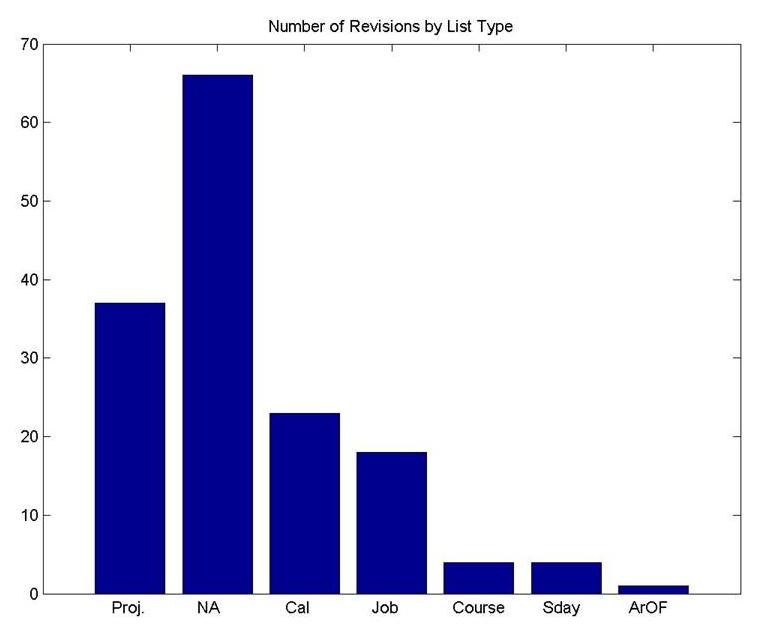 - This coarse look at the data does not reveal ‘task churn' - the addition and deletion of tasks, a typical list-re-edit changes something between one task to a third of the entire list.