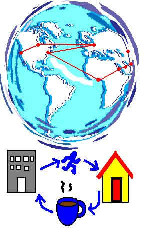 The harried frequent-flyer, crack-berrying at airports, may well vanish with rising aviation-fuel costs, but channel-surfing the real world as a way of life is here to stay. Even if we have to rely, green-faced, on bicycles, GPS-equipped neo-sailing-ships and a new age of clean steam engines. It makes no sense to ask the cloudworker where are you from? He has no geographic hometown. Ask, instead, where have you world-surfed so far? Don't ask, how was your day? You'll get more interesting answers with where was your day?