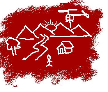 When I was a kid, we lived in a big, drafty bungalow-style house, verandas, mango trees and all. The dining room floor was some sort of dull red matte-like surface. It worked perfectly as a chalkboard. I would frequently cover the entire floor with chalk drawings. It strikes me that the way I drew back then was rather caveman-like. Atavistic mixes of symbols, metaphors and icons. Here's a scene I drew frequently. Not quite a buffalo hunt.