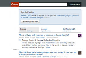 I think it will be interesting to see how Quora develops as the universe of answers is built out. While much of the material may have a limited temporal component, the incentive to contribute is highly temporal. New questions are much more visible than older questions, both as a matter of architecture and as a matter of relevance/currency, so there is much greater incentive to contribute to new questions than to old questions. I wonder how this will affect Quora's value for atemporal questions in the long run. Will people continue to update questions when someone else already has 200 upvotes and there is no longer enough audience for your contribution to rise to the top? It would seem that for these types of purposes they might want to start emphasizing the contributions of people who suggest edits to answers, summarize answers, etc.