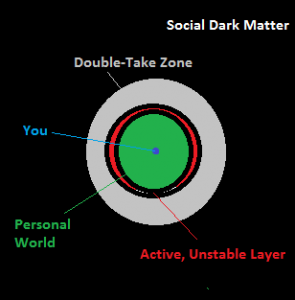 So let's say there are three zones around you. The context-free zone of personal relationships, surround by a context-dependent double-take zone (call it the don't-I-know-you-from-somewhere zone if you prefer), and finally, social dark matter.