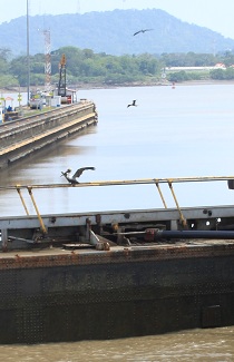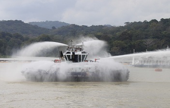 Oscillating slowly back and forth across sections of the Panama Canal, you will see strange boats carrying dancing fountains. I missed what the tour guide said, so I have no idea what this is.
