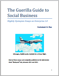 Anyway, I figured I'd put together the essays into a convenient PDF collection. So here you go: about 29,000 words and 104 pages worth of slightly evil thoughts on social business: The Guerilla Guide to Social Business.