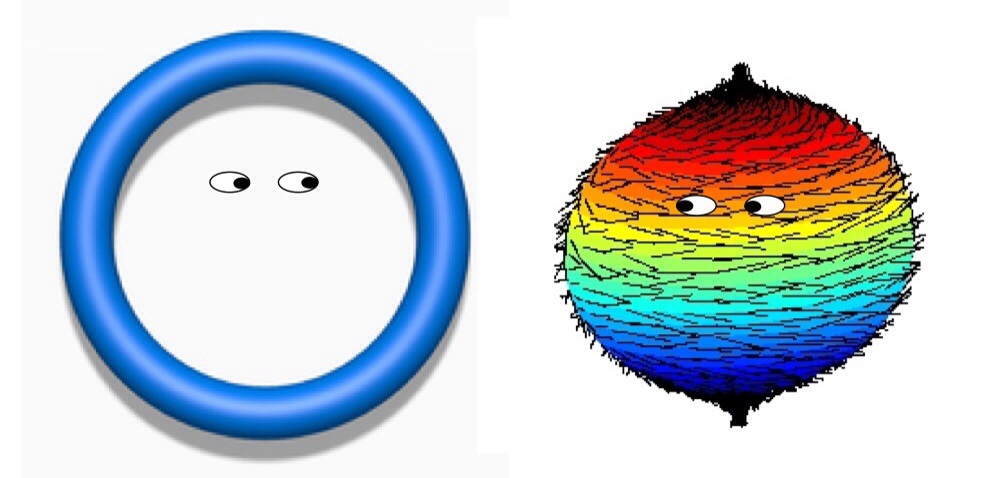 It is very minimal, and what humor there is lies in the illusion created by the eyes, of mutual suspicion, when no such suspicion can of course exist in a featureless black obelisk. In my research I also applied this procedure to graphical depictions of the un-knot and the Hairy Ball Theorem: