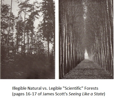 The characteristic feature of external legibility tends to be self-similarity: monoculture, grids of endlessly repeating rectangles. A territory is legible and controllable from the outside when its internal features are made very similar to each other. But the characteristic feature of internal legibility is the opposite: variety and difference. Lynch says: