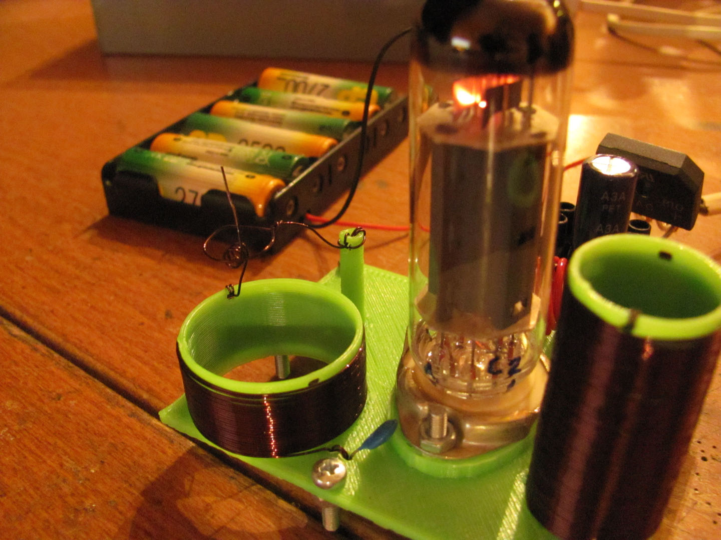 A little 3D printed vacuum-tube tesla coil/tube oscillator.