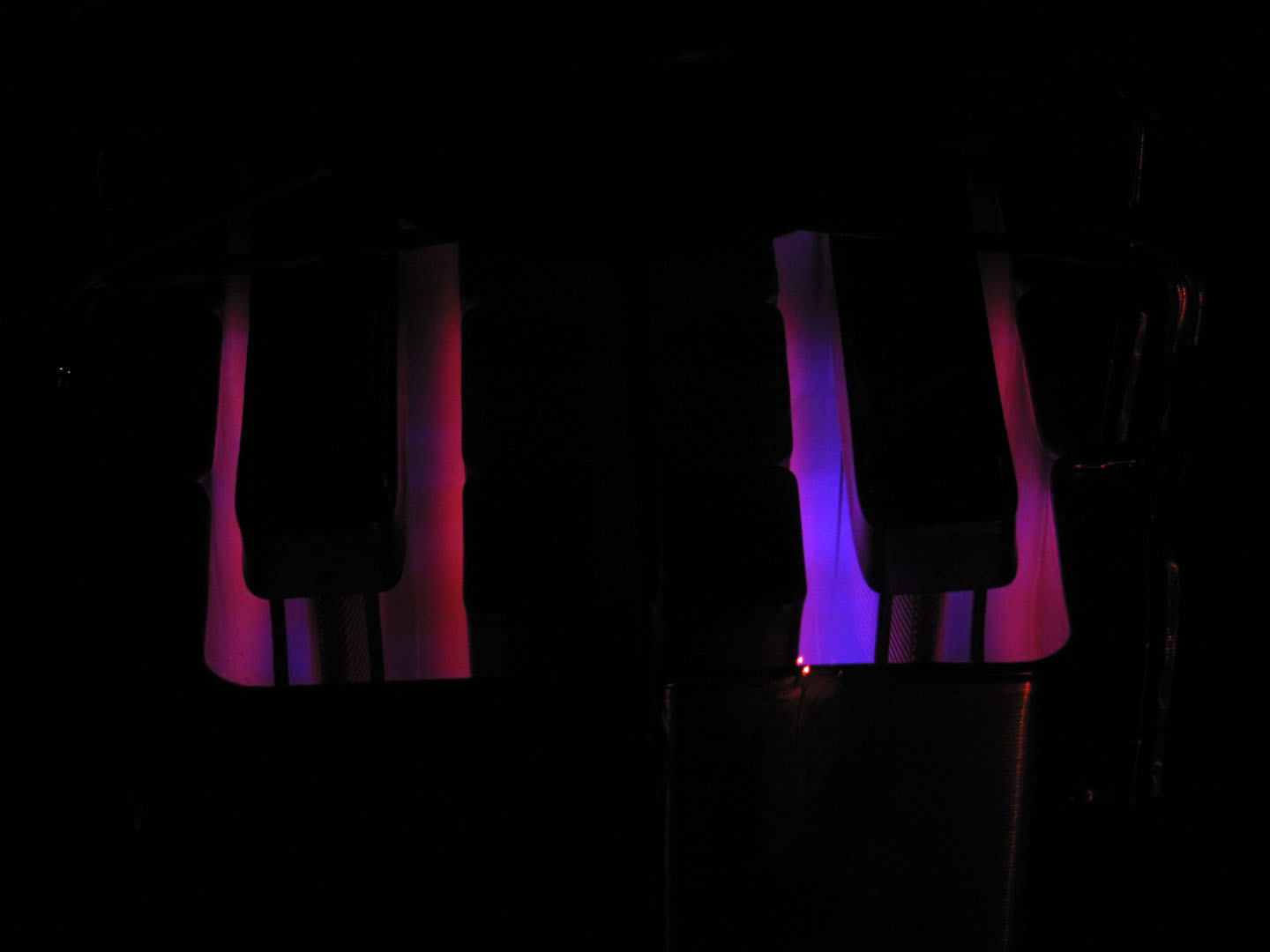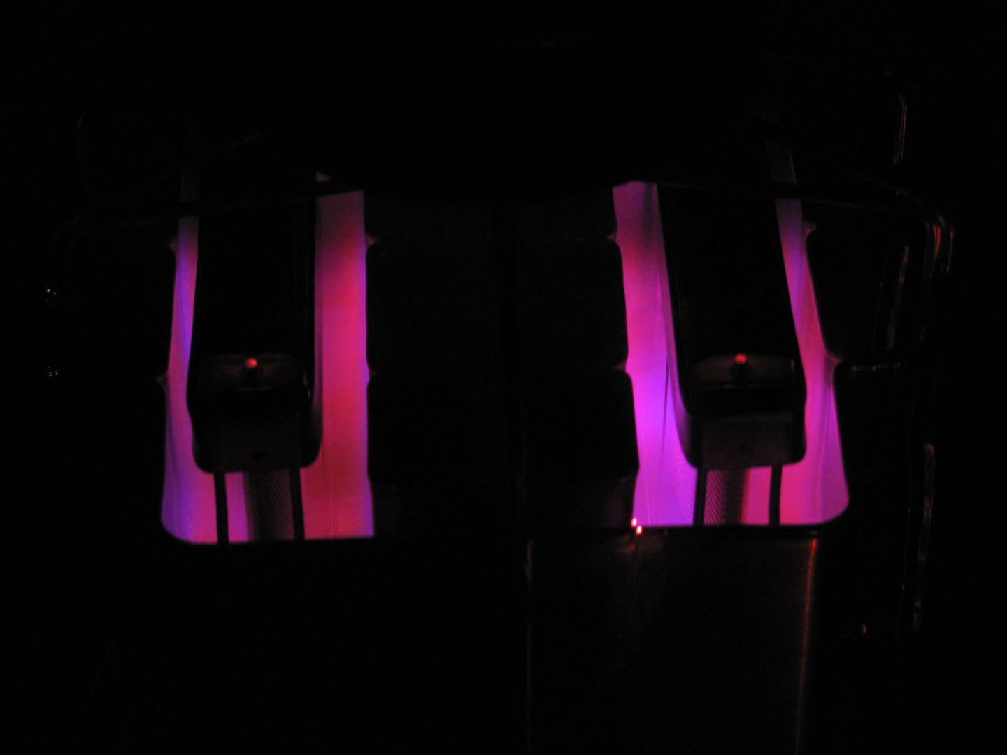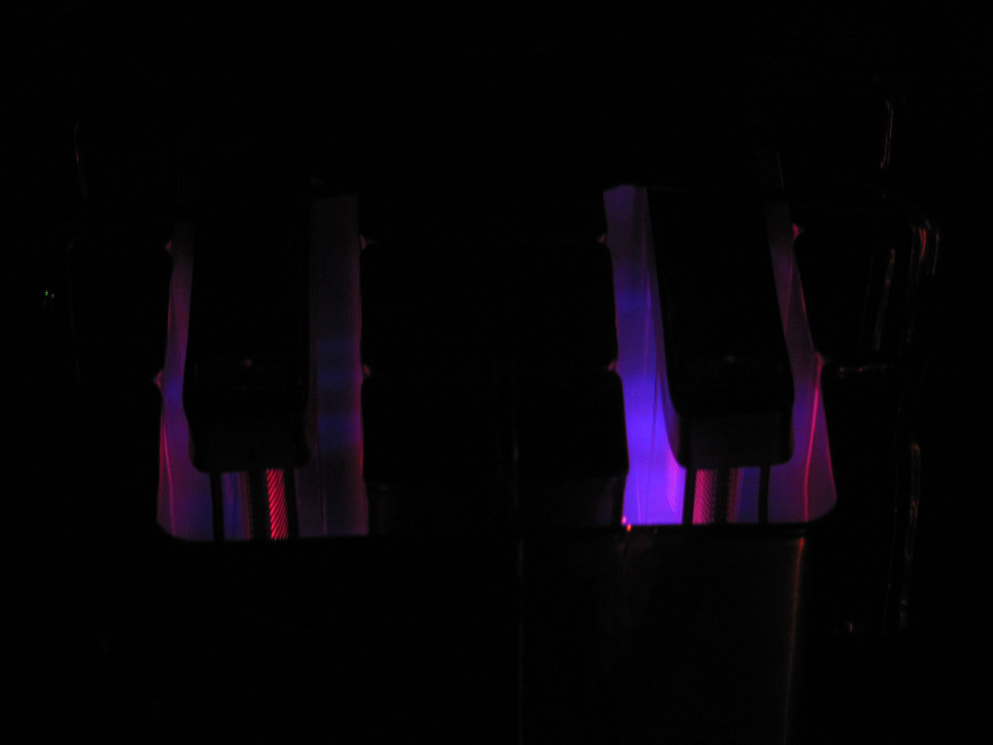 25KV is flowing through the tube, which acts as a variable resistance. The current in the arc changes with the sound, and the arc expands and contracts, reproducing the sound in the air. In theory it should be perfect fidelity, but in practice it's kinda quiet, and the low frequency stuff is almost absent. The plasma does not have enough oomph in it to really move the air for the low notes, at least not on this power level. Still, it's a good tweeter if you don't mind the x-rays.