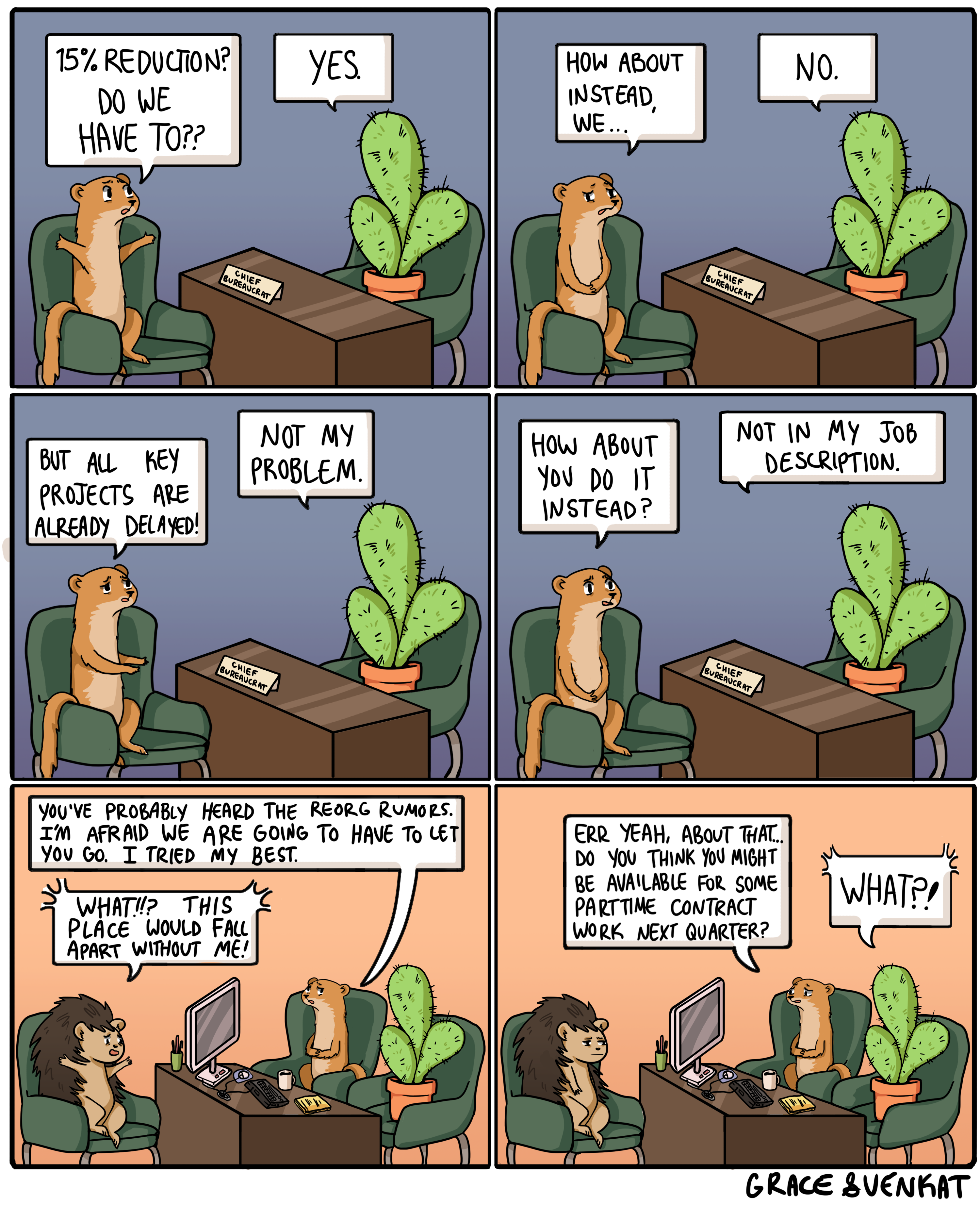 I like the way Prickly manipulates Weasel into sacking workers through his use of work-to-rule and through not giving away information because it reflects how people behave IRL.