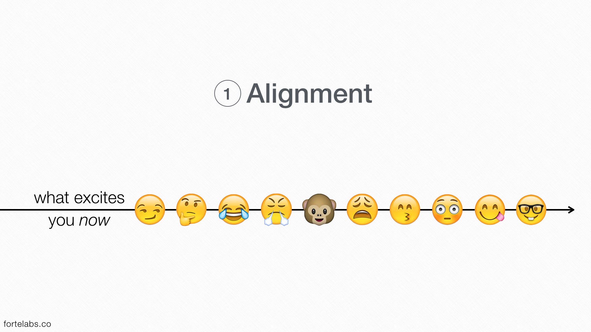 If we consider that our numerous selves have very different priorities, aligning their actions becomes more important, and harder. Instead of forcing all of them—past, present, and future—to line up with an unchanging predetermined outcome (a “mission” or “purpose”), it makes more sense to start with what excites your current self right now, and then work from there to define that motivation in increasingly subtle shades over time. The more precise your understanding of what exactly excites you about any particular project, the better your ability to generalize it to other projects and topics — to thread and follow that particular needle winding through the haystack of life.