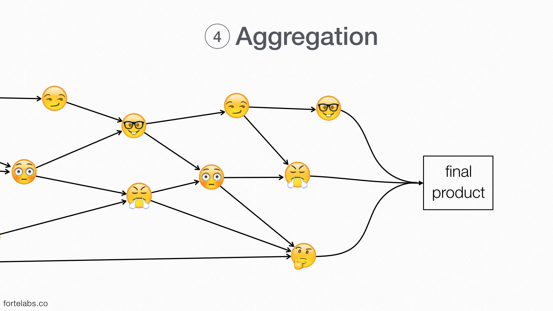 - Aggregation: the assembly of the results of the previous activities into a final product