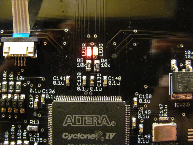 I had a bulk interface on the PCBs, in anticipation of a centralized sampling approach. One cell produces 4Mbps of data stream, and I figured it would take another FPGA board to poll them all, process the data and drive an LCD.