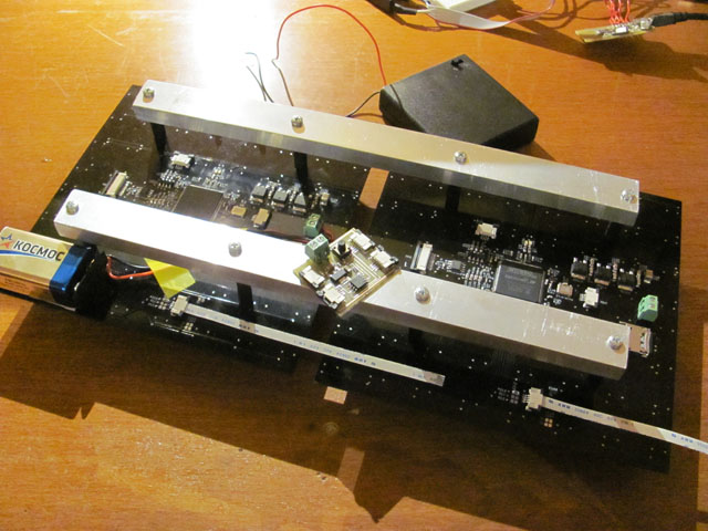 It takes an evening of boring work to populate one cell's PCB, so much podcasts later I got myself a 2x1 array.