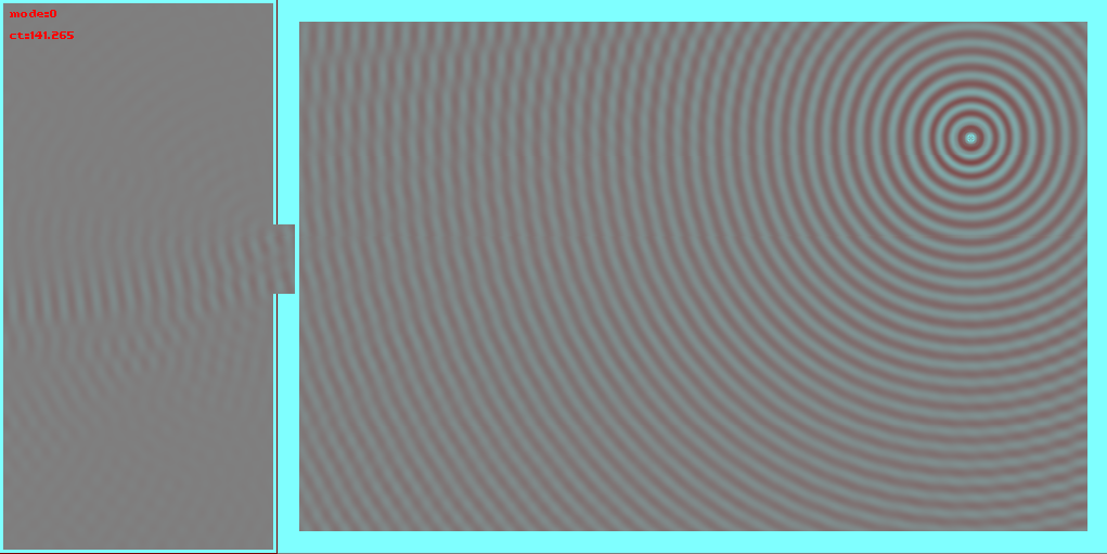 The sound would hit the mics on one side a bit earlier than the mics in the centre and the other side. The higher the deflection, the higher is the frequency of this rolling wave. For the source moving left and right, we would get the waves that are slower, then faster, then slower, and so on.