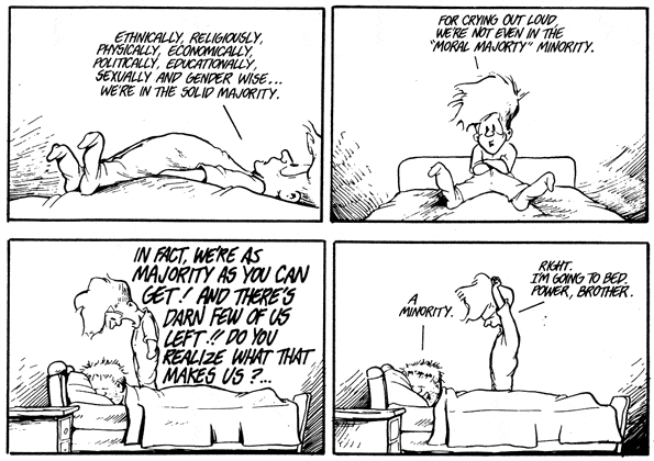 Ever-expanding circles of Orthogonians, encompassing all those who ever felt their pride wounded by the Franklins of the world, were already his constituency. Richard Nixon was at their center, yet apart, as their leader. The circle could be made to expand... though via a paradox: the greater their power, the more they felt oppressed. When the people who felt like losers united around their shared sense of grievance, their enemies felt somehow more overwhelming, not less... Martyrs who are not really martyrs, oppressors who were not really oppressors: a class politics for the white middle class. The keynote of the new, Nixonian politics.