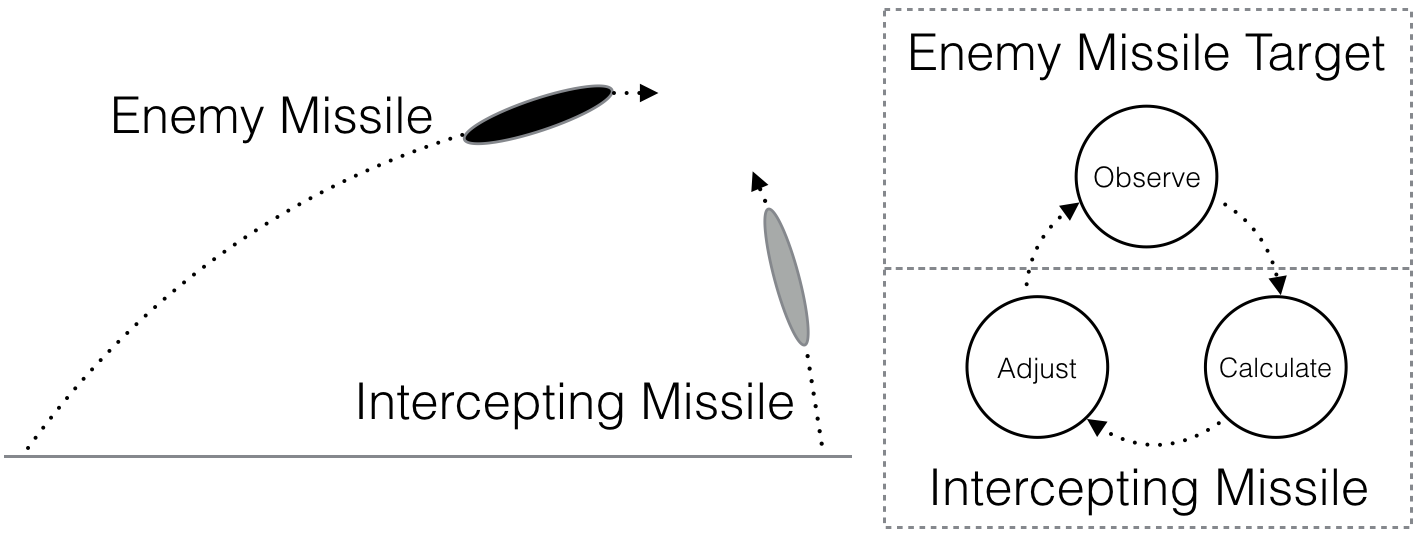 An analogy for the BML cycle comes from the task of early analog computers. These were deployed first in ballistics, where anti-missile defenses needed to intercept enemy missiles in air.