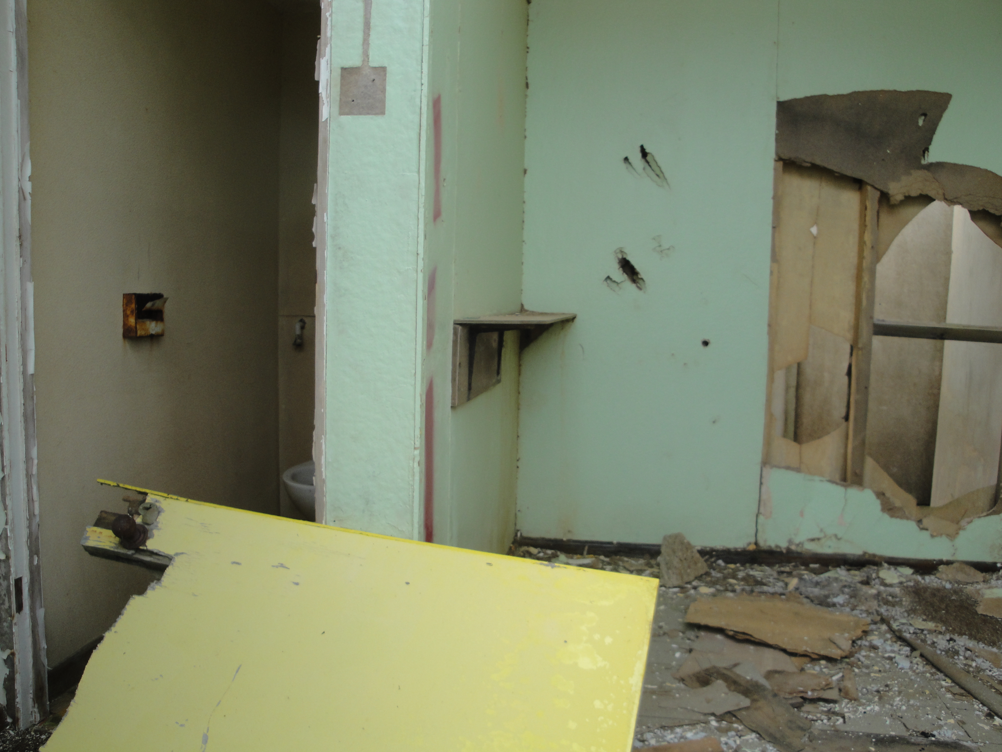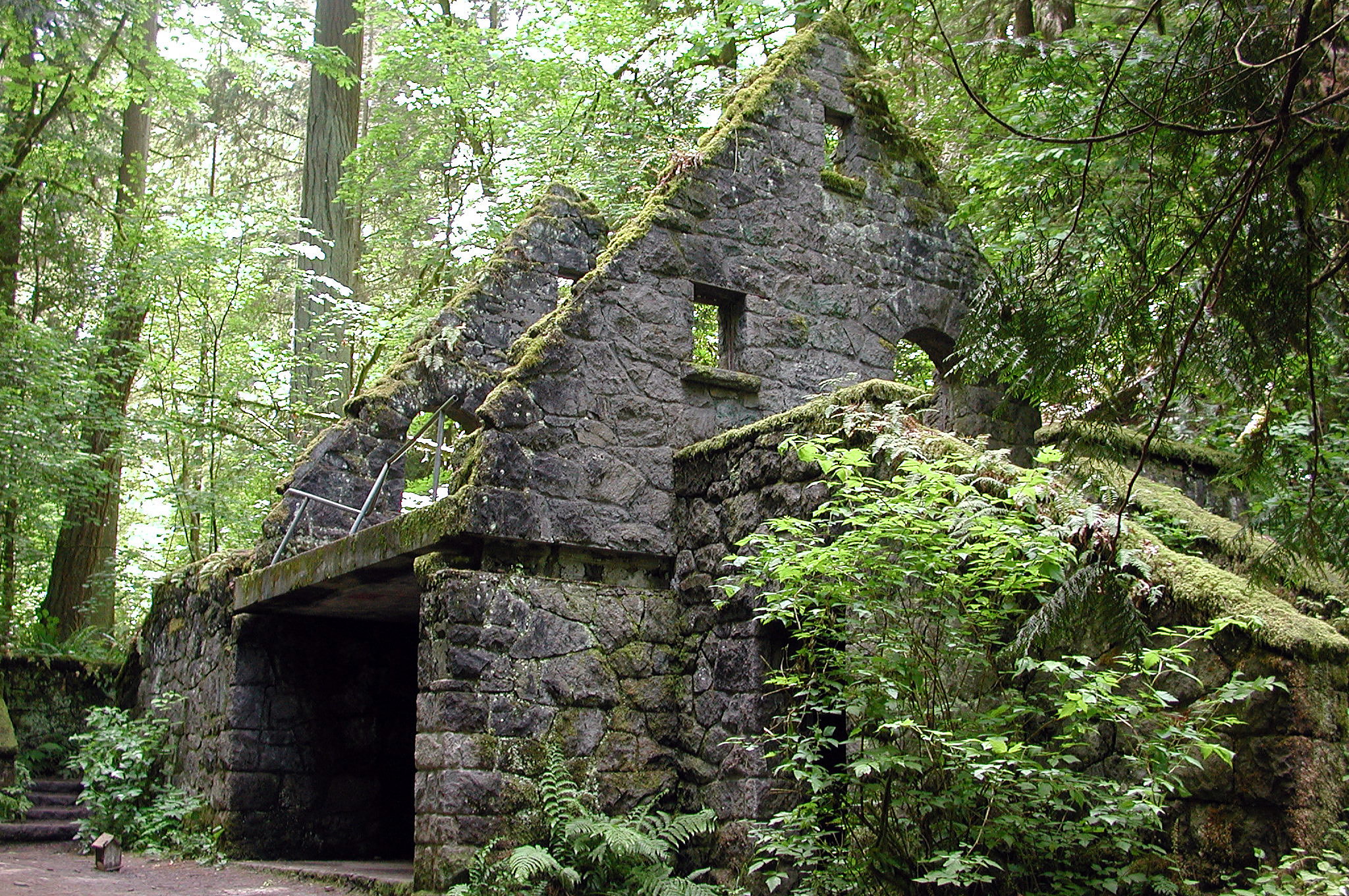 It seems that human artifacts made from natural materials do not decay into mess, while human artifacts made from highly ordered artificial materials (sheet rock, plastic) decay into mess. Compare this rough stone ruin overgrown with moss