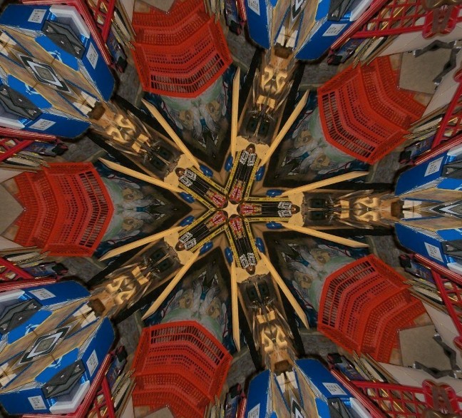Here is the earlier picture of basement clutter transformed with a kaleidoscope filter: