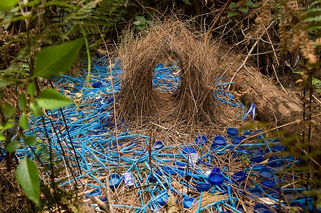 That which is "garbage" is aesthetically excluded from almost every visible order. Garbage is mess by its very nature, even if it is not the kind that rots. It must be taken away to where no one will look at it, because the decaying imprints of order it bears interfere with the aesthetic demands of all human spaces. Artists have been interested in garbage for precisely this reason. One of the few examples I have seen of garbage being incorporated into an order that is not "mess" is the nest of a bowerbird that has been decorated with bright blue plastic bottle caps and bright blue plastic straws.