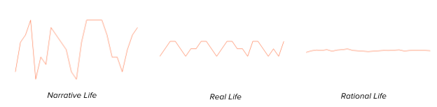There are three basic types of human-experience curves, all with a simplicity reminiscent of Kurt Vonnegut’s narrative graphs. The first is provided by the narratives used in media. It is a collection of high peaks and deep troughs. The second is what we could call real life, as opposed to narrative life. It is milder. Rolling hills, rather than mountain tops and steep drops. The third is what the rational-philosopher aims to achieve. Their desired curve of human experience is close to a flat line. Its variance is barely perceptible.