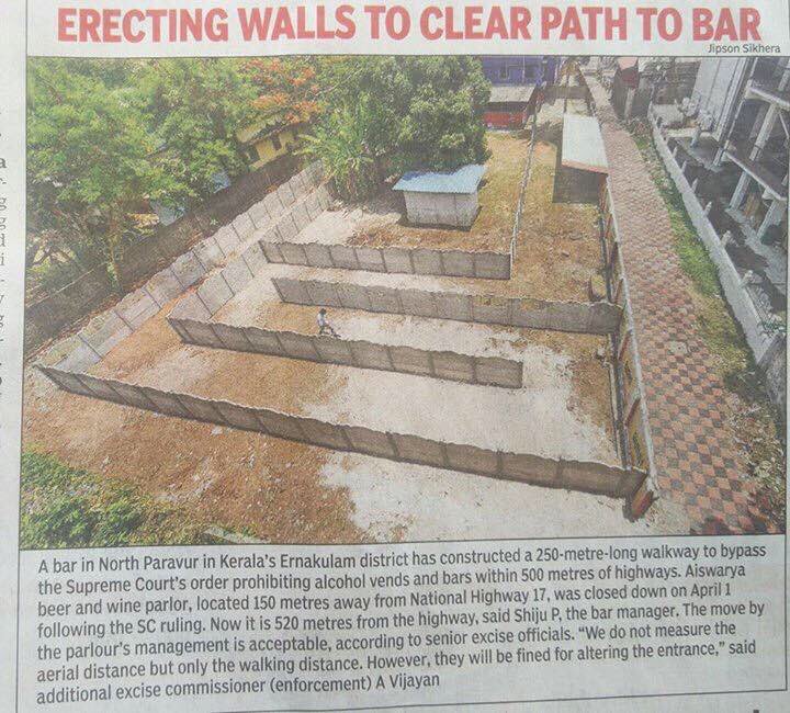 4. The dark side of this is well worth exploring/thinking about, when motivated reasoning and bad-faith win out over a sincere effort to get to value via partial truths. When you resolve partial truths in a self-serving way, obeying the letter rather than the spirit of the underlying metaphysical intension, you get into trouble. That path-to-the-bar is a borderline case. If you think the original law is silly, then the resolution is good metaphysics -- gets to the "truth" about alcohol laws and around their hypocrisies. But if you think alcohol regulation is a good thing (and there are reasons it might be in a Kerala due to weird economic conditions), then this is bad metaphysics.