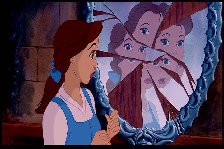 Figure 2. Belle staring at a broken mirror in Beauty and the Beast (1991). Image from here.