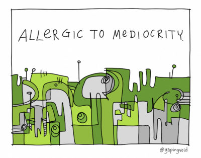 The increasingly mediocrity-hostile zeitgeist -- witness this schwag t-shirt, ht Andy Raskin -- has only made me double down.