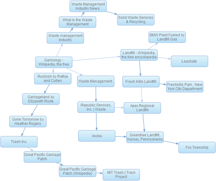 I am part of a long tradition of trying and failing to build trails technology. I led a team at Xerox that built a product, called Trailmeme (2008-12, RIP), that created navigable, visual trail maps of web content that looked like this.