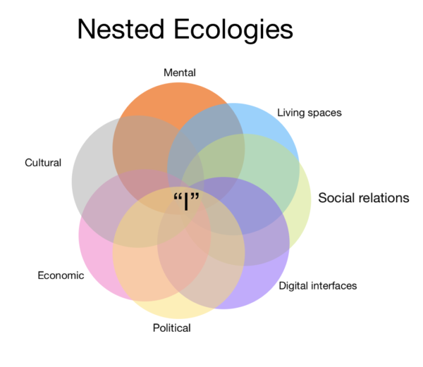We exist at the nexus of these ecologies. “I” am an expression of the meeting place between all of my constituent spheres. How are these ecologies designed? What modes of being, or modalities of ‘I’, do they support?