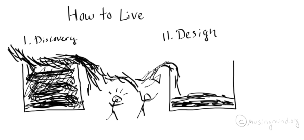 To make sense of this old question in new circumstances, we can squint beneath its surface: what are we asking, really, when asking how to live? Nietzsche wrote that while truth can stand on one leg, it’s sturdier upon two. By expressing an idea from at least two perspectives, we give truth “a right and a left foot” to walk, to journey along with the procession of time. Asking how to live, too, is a question built of two legs. Philosophy is an inquiry of both the known & the unknown, of 1) discovery, and 2) design.- Discovery: What of the unknown can we still learn in pursuit of living well? What unknown wisdom remains to be discovered?