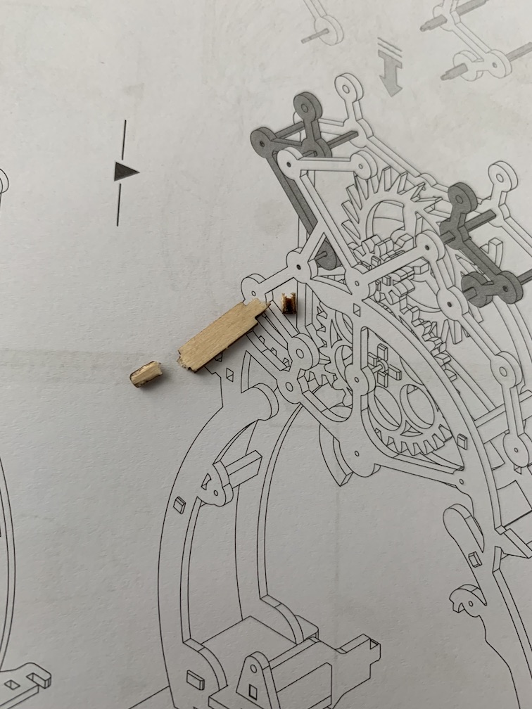 But now, the clock was stopping randomly after 30-50 minutes, because one or the other gear down the train kept falling out.