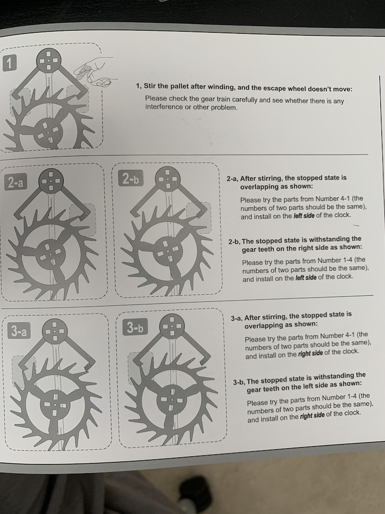 - You have to understand the working principle to troubleshoot efficiently. Until I did the free-running experiment, I hadn't actually quite understood how the escapement worked. But once I got it, the main troubleshooting principle became clear: work up the gear-train from the least-loaded to most-loaded gear.