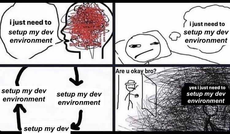 - Closer to our theme here, the "setup my dev environment" in science fiction is spending all your time on unpublished "world building" notes and never getting any actual completed stories out. The metamodern thing to do there, of course, would be to find a way to publish the world-building itself.
