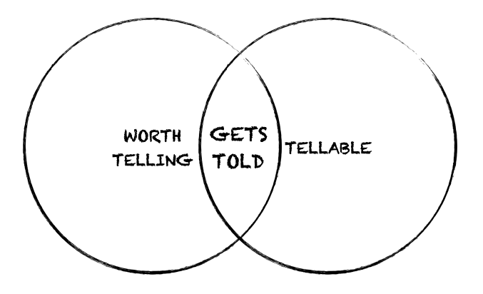 Okay, back to fiction, and the worth telling/tellability Venn diagram.