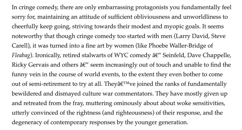 My participation in Substack is largely pragmatic. I'm very sympathetic to commonsism in general and blogospherism in particular. I'm neutral to mildly hostile to platformism. In the form it actually exists, it feels mostly an acceptable sort of mediocrity-friendly space to participate in, and Substackism is a flavor I can mostly live with, especially if it means making money. The monarchism tends to be latent rather than explicit (which is not the case on Elon Twitter, which is why I've abandoned it), and not a constraint for most things I want to do.