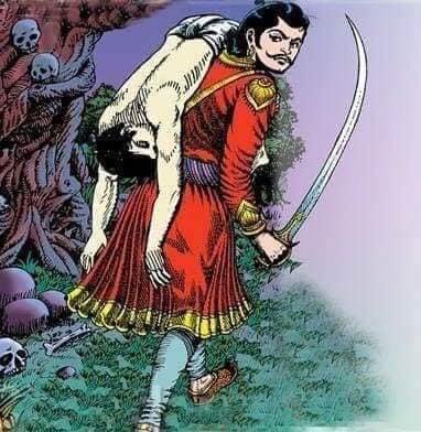 When I was a kid (about 6 or 7 I think), the stories were being serialized in a children's magazine called Chandamama (Moon Uncle), and the accompanying illustrations were probably my first experience of horror. I'd hurriedly skip past the pages with the charnel ground illustrations. Here is the main one, which appeared in every issue. This picture is a pretty tame one meant for children by the way, since bleached bones are obviously the relatively non-horrifying final stage of decomposition.