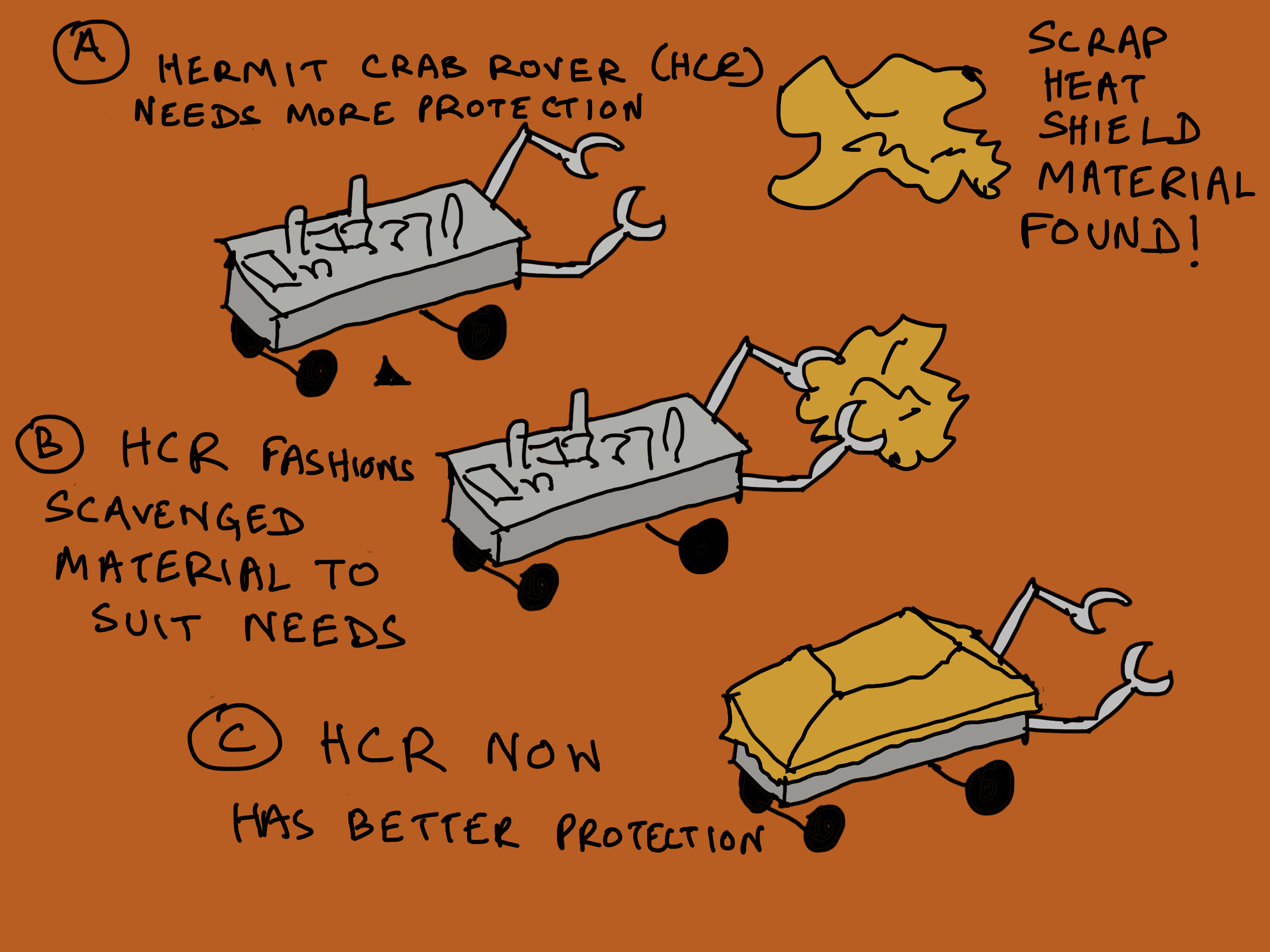 In the Yak Rover project, my collaborators and I initially started out with a few pure-build and pure-buy rovers, but are increasingly starting to explore accretive design spaces, where rovers come together in ways that look more like Pickle Rick than Perseverance. I myself started out wanting to design and build an entire rover from scratch, with as few off-the-shelf parts as possible. I got reasonably far: