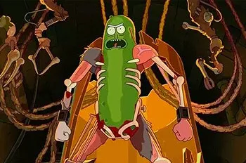 Two examples, both from cartoons (I overindex on cartoons clearly). First: Pickle Rick from Rick and Morty, where Rick starts out by turning himself into a pickle and then gradually adds more capabilities, such as by killing a cockroach and a rat and taking their body parts.