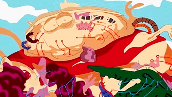 Second: The Akira-inspired South Park trapper-keeper monster, in which Cartman's trapper-keeper (a kind of pencil case) grows by swallowing all sorts of devices and gadgets.