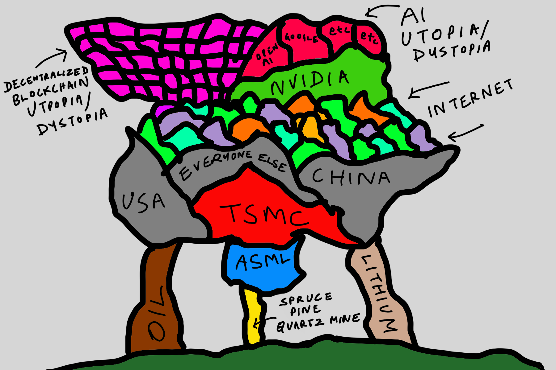 It’s funny how the utopian/dystopian discourses at the highest levels of abstraction, AI and crypto (the two domains that keep me busy at work) never worry much about the fragile bottom of the stack. I made up some non-starter political slogans about this situation: